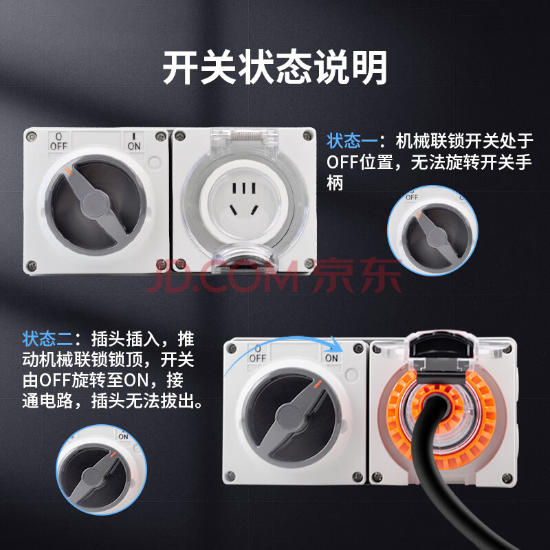 商品相册:TOWE同为10A户外防水插座带开关 工业IP66防暴雨插座 家用五孔组合插座 TW-F-CZ-G10K FS第