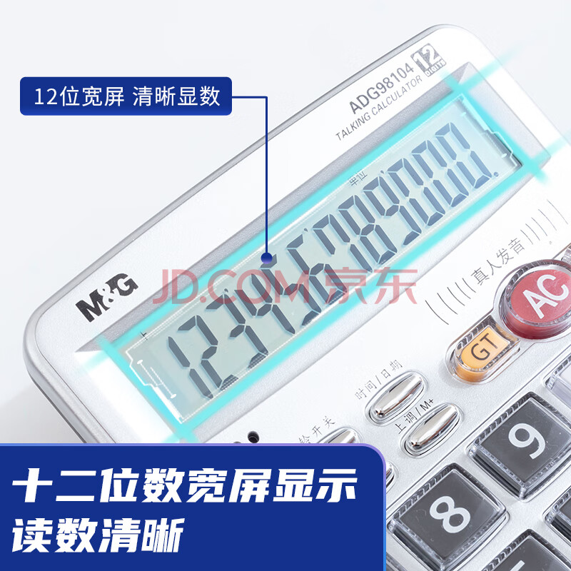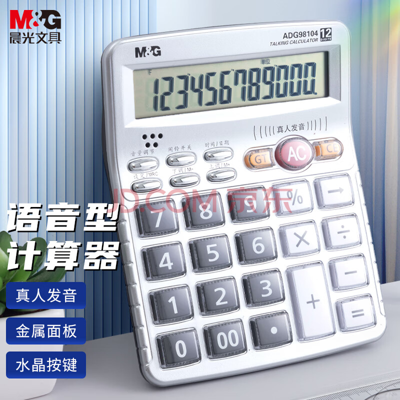 商品相册:晨光(M&G)文具12位显示语音计算器 桌面办公计算机 学生/办公通用 大屏幕计算器 银色单个装ADG98104第