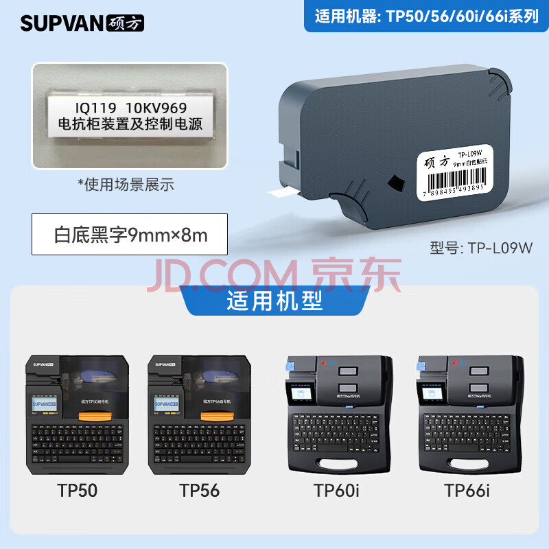 商品相册:硕方线号机贴纸 9mm白色不干胶纸带TP60i TP66i打号机打码机打字机色带贴纸TP-L09W第