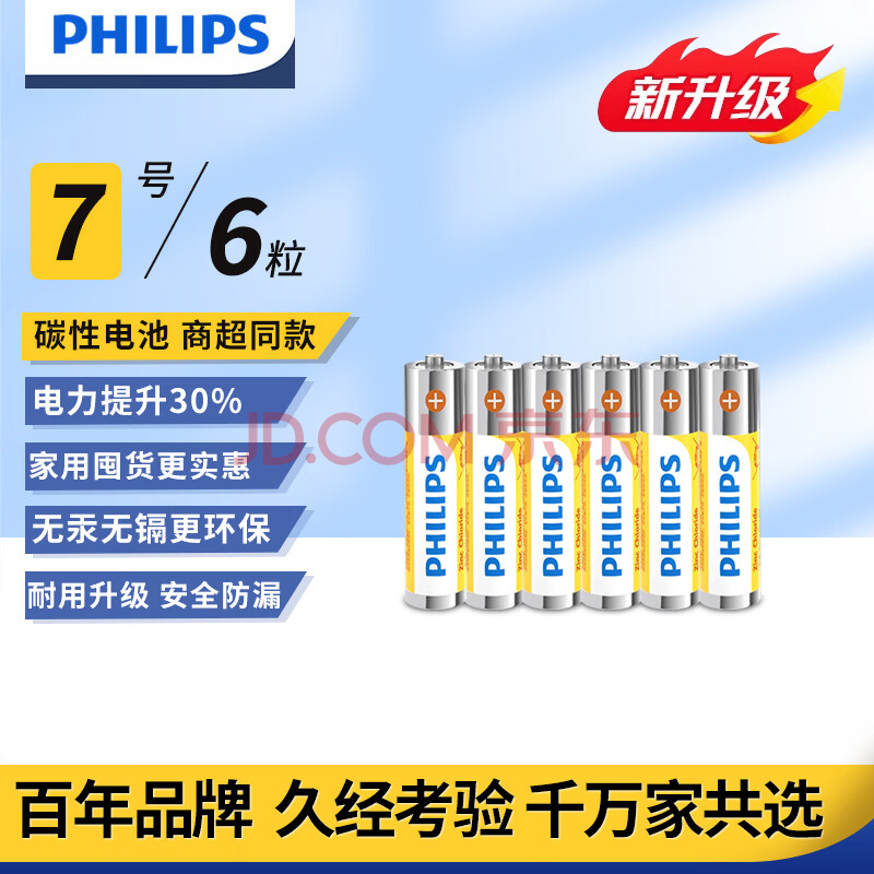 商品相册:飞利浦(PHILIPS)碳性7号电池6粒干电池适用遥控器/钟表/电子称/计算器/闹钟/耳温枪七号电池AAA R03第