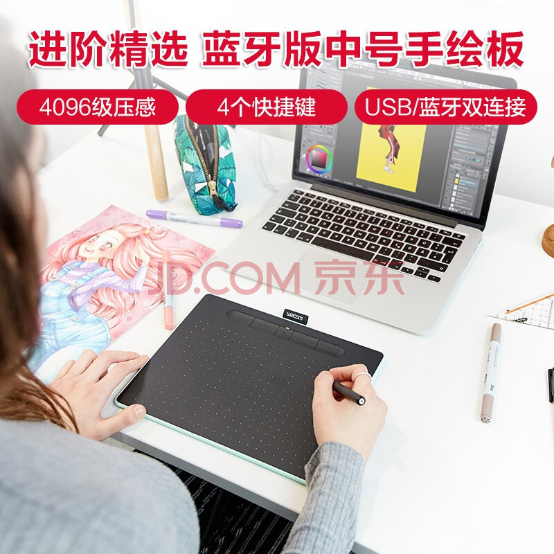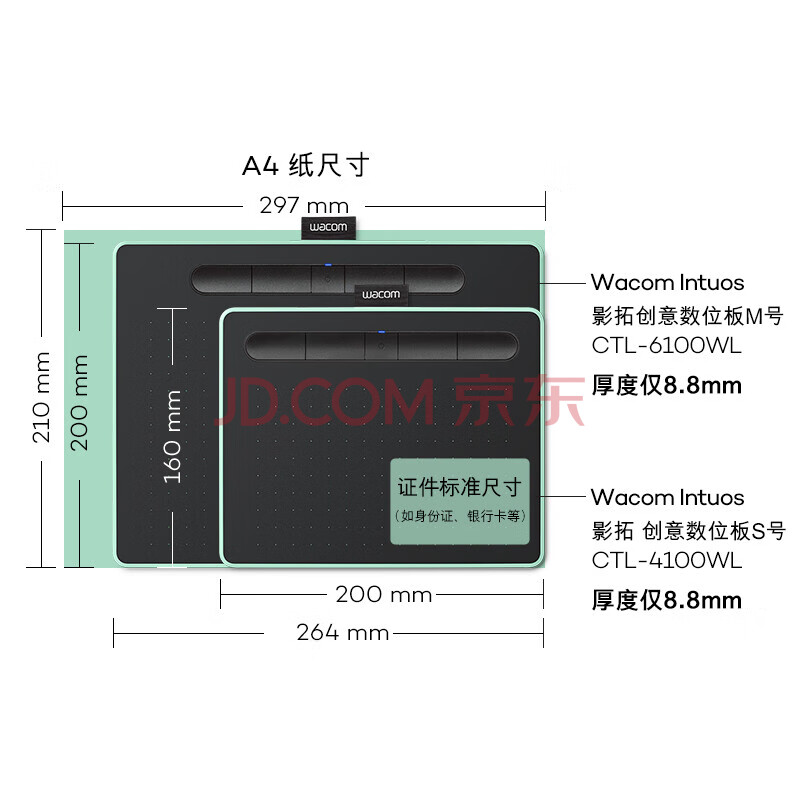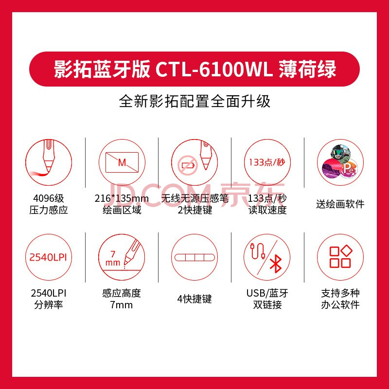 商品相册:Wacom数位板 手绘板 手写板连电脑手机电子绘画板 蓝牙写字板教学网课CTL-6100WLA/E0-F绿色中号第