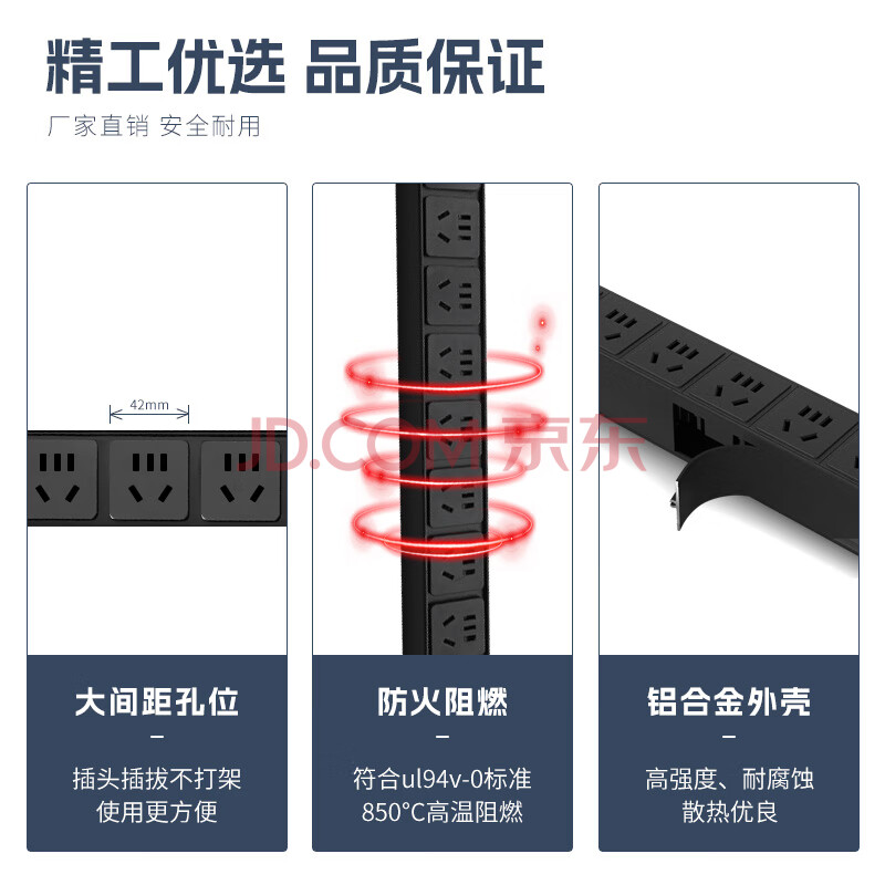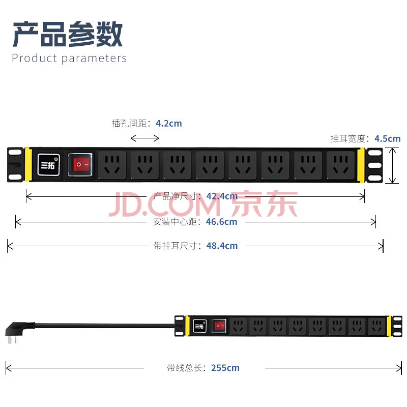 商品相册:三拓 TS8008机柜PDU电源插座机房插排10A输入8位10a输出新国标孔开关模块1.5平方线芯2500W第