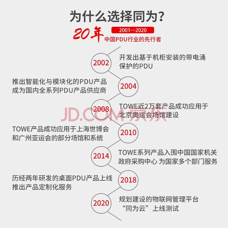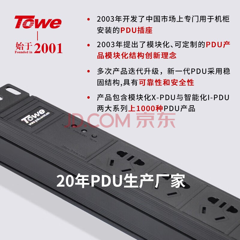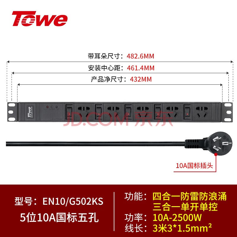 商品相册:TOWE同为pdu机柜插座3米10A分控插排防雷防浪涌抗电涌插座/插线板单开单控5位第