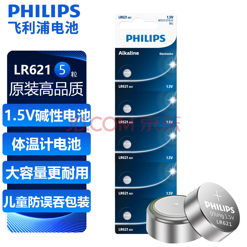 商品相册:飞利浦(PHILIPS)LR621纽扣电池5粒通用sr621sw/364/LR60/ag1适用石英表电子表天梭卡西欧手表电池lr621第