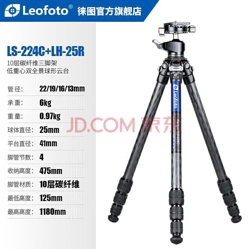 商品相册:徕图(Leofoto) 三脚架 手机支架佳能尼康索尼相机便携碳纤维摄影摄像旅行风光三脚架云台套装 LS-224C+LH-25R第