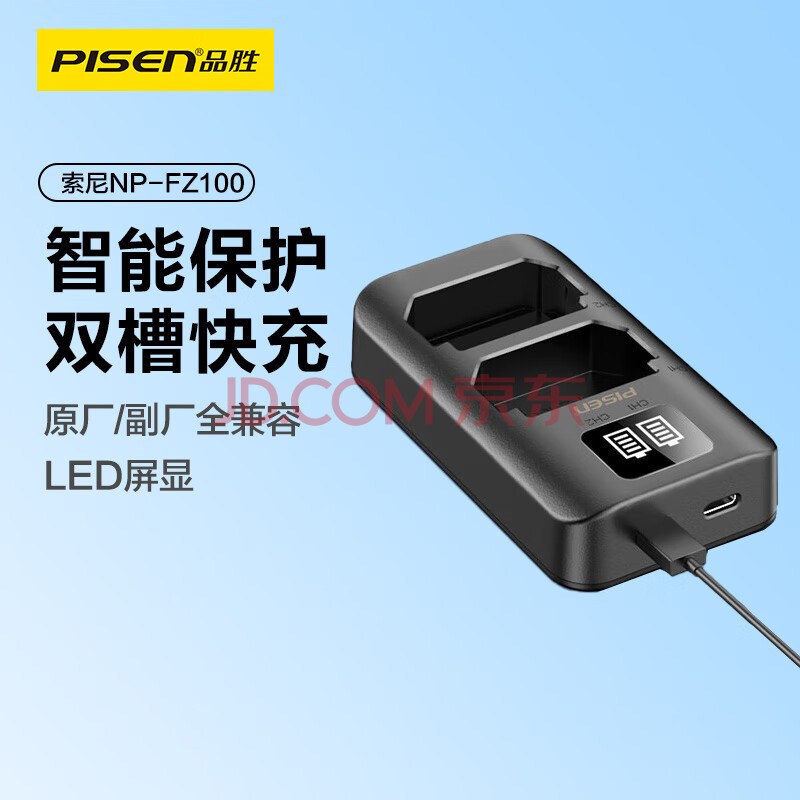 商品相册:品胜 索尼NP-FZ100相机电池充电器 适用a7m4 a7m5 ILCE-7R a7m3 m4 a7c2 a7r3 a7rIII a6600双槽座充电第