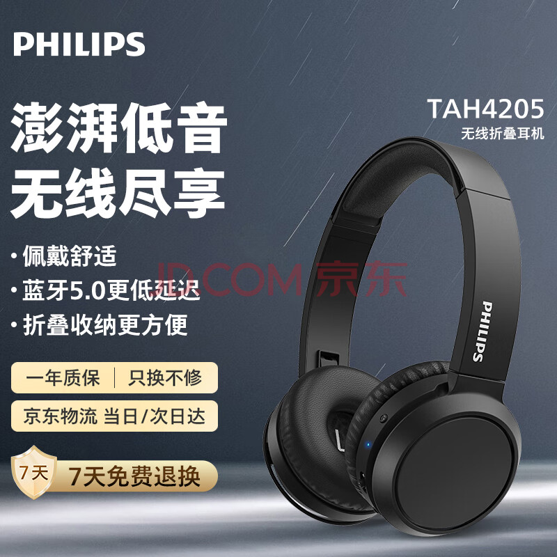 商品相册:飞利浦(PHILIPS)【升级版头戴式蓝牙耳机】TAH4205 无线运动耳机网课电脑笔记本耳麦 学生办公必备礼物 黑第