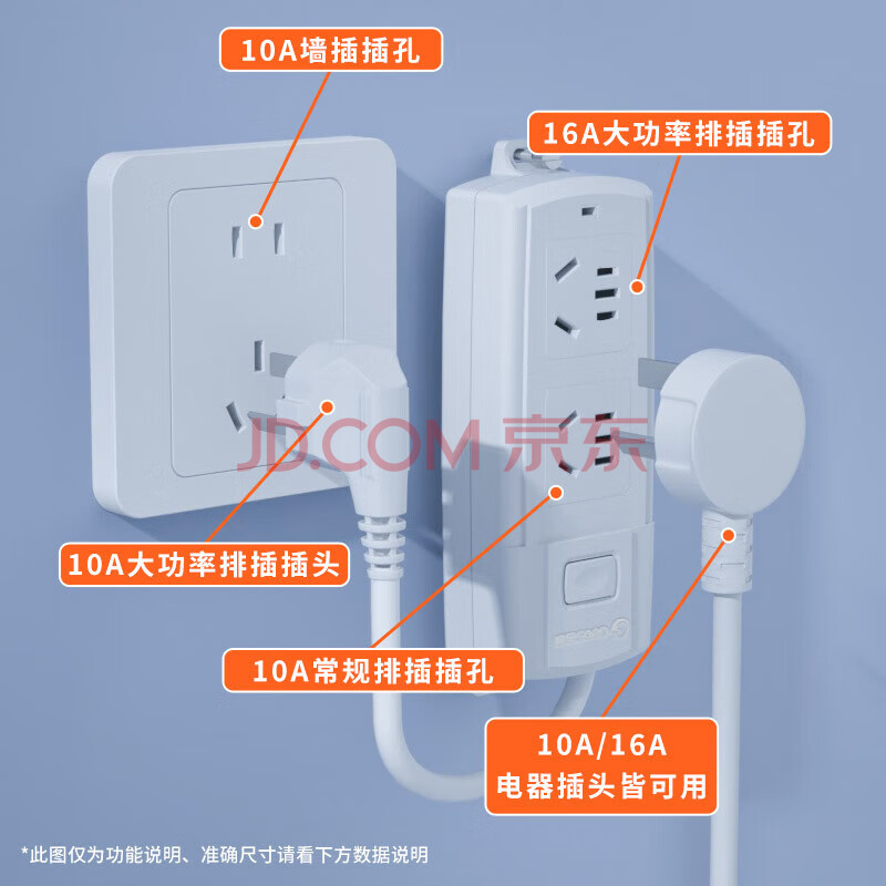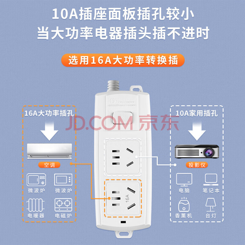 商品相册:吉顺10a转16a插座大功率排插排转换器插头空调热水器电磁炉延长线接拖线板 10安插头转16安 3米第