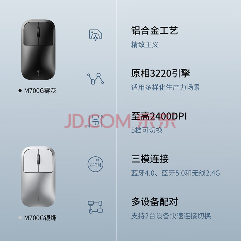 商品相册:雷柏(Rapoo) M700G 无线蓝牙鼠标 办公鼠标 轻音鼠标 便携鼠标 人体工程学 电脑鼠标 笔记本鼠标 灰色第