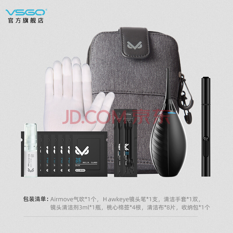 商品相册:VSGO微高VS-A3 wrap up相机清洁随行套装相机防水包镜头清洁镜头纸布气吹皮毛虎镜头笔擦镜纸第1张/共6