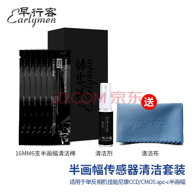 商品相册:早行客 aps-c半画幅清洁棒 相机传感器清洁套装微单反CCD/CMOS清理工具 16mm6支+清洁液/剂+镜布第