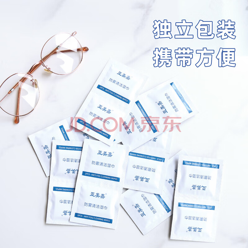 商品相册:亚美嘉 防雾眼镜湿巾镜片防雾湿巾清洁眼镜布一次性擦镜头游泳滑雪近视眼镜湿巾高清护目镜防起雾布100片第