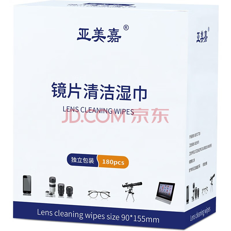 商品相册:亚美嘉眼镜清洁湿巾 一次性眼镜布 镜头清洁擦镜纸 手机 电脑 电视 屏幕擦拭布180片装第
