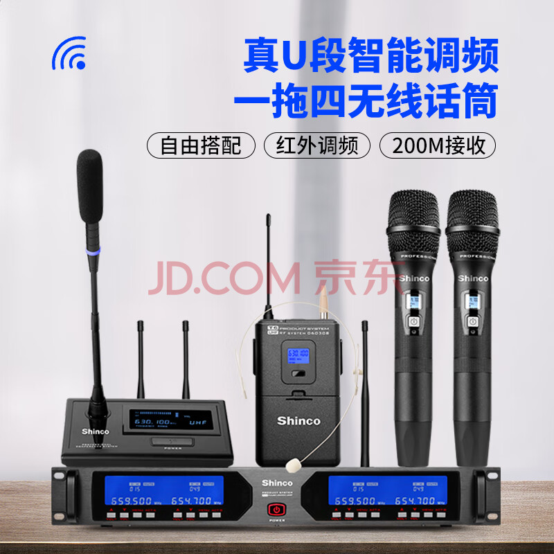 商品相册:新科(Shinco)HY004 一拖四无线视频会议麦克风 手持家庭KTV演出婚庆演讲培训会议主持无线话筒第