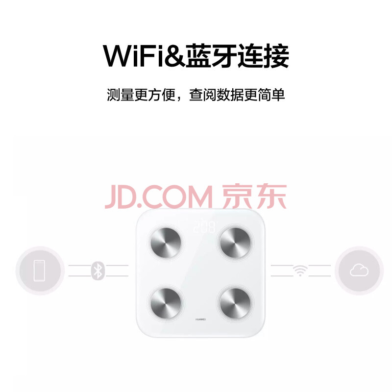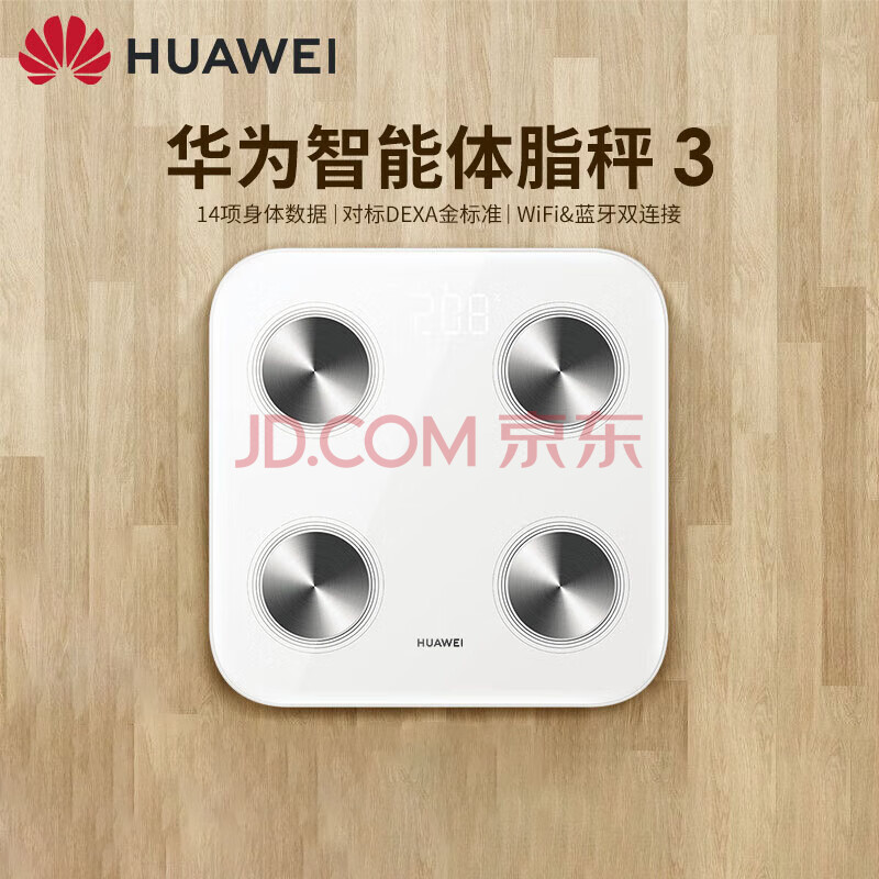 商品相册:华为智能体脂秤 3 电子秤体重秤家用 14项身体数据/检测精准/WiFi蓝牙双连接 支持安卓&iOS 雅致白第