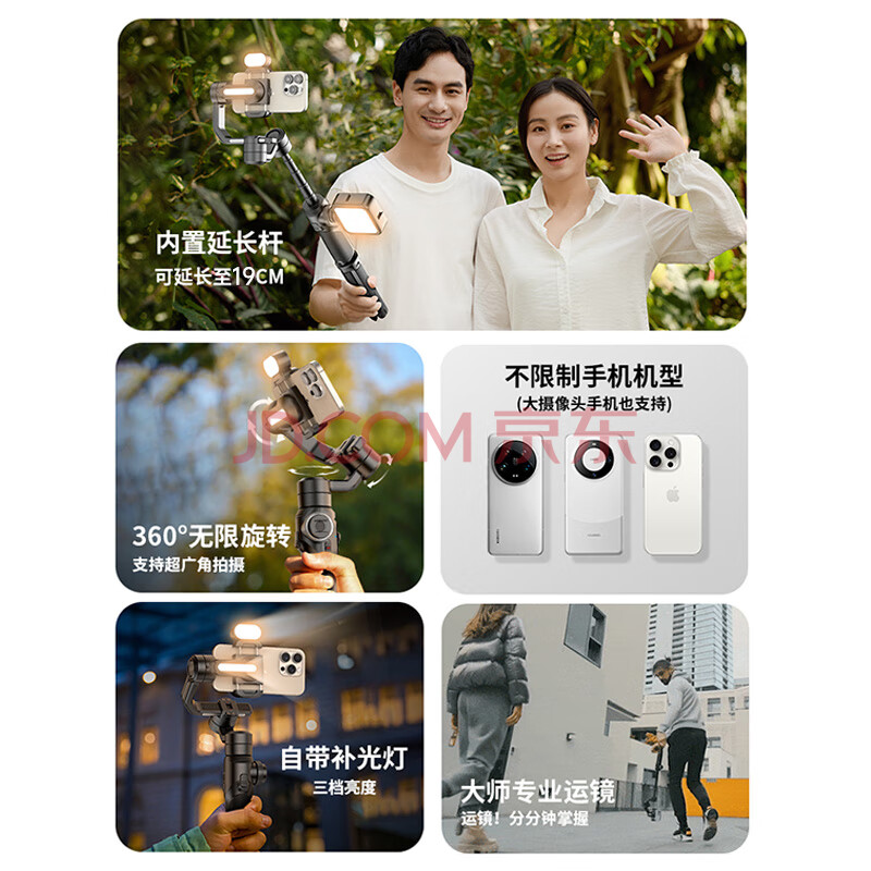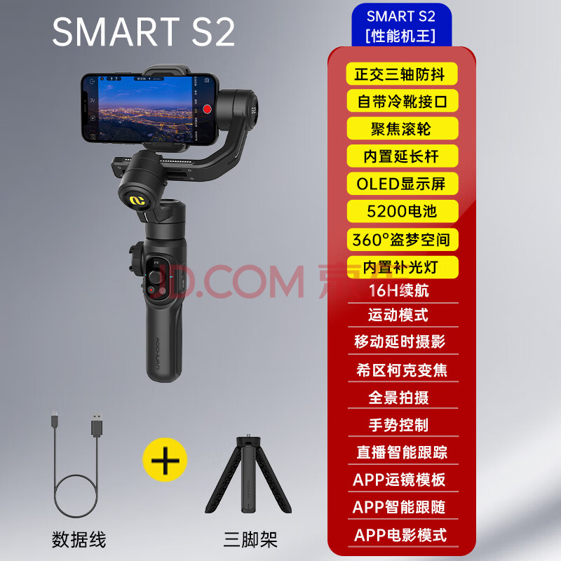 商品相册:奥川正交三轴稳定器】S2手机防抖云台手持拍摄vlog视频智能AI追踪跟拍自拍杆360度旋转三脚支架标配第