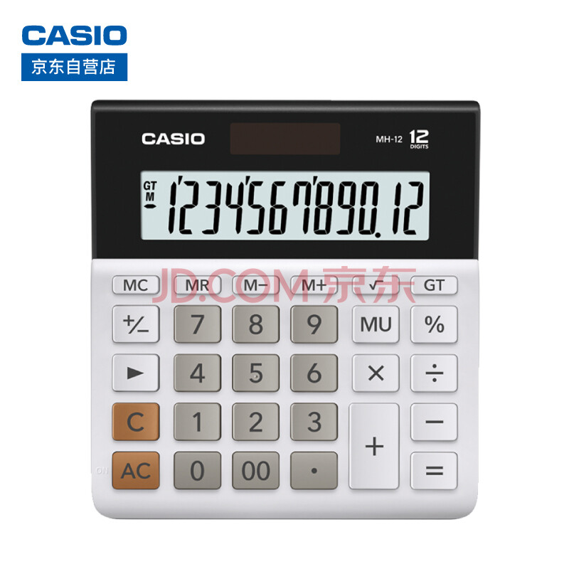 商品相册:卡西欧(CASIO)MH-12-WE 小型12位双电源 超宽计算器 白色 专业计算系列第