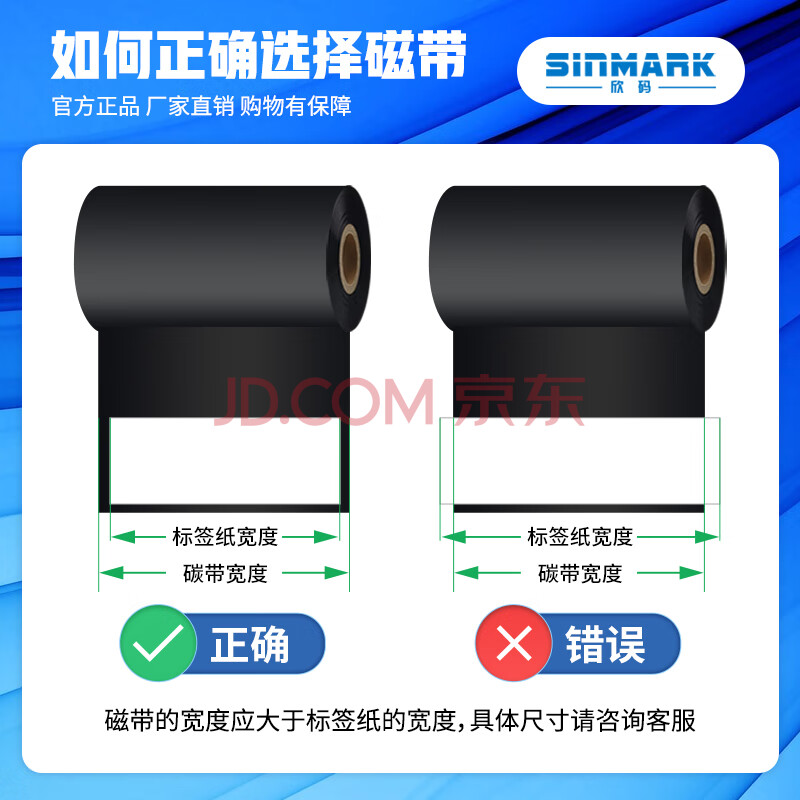 商品相册:欣码(Sinmark)蜡基碳带 条码机色带 打印机条码机色带 热转印标签色带标签机 L110MM*300M第