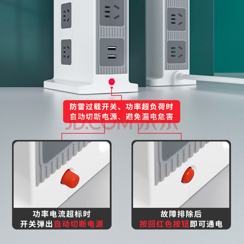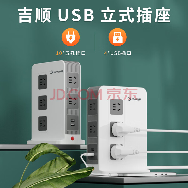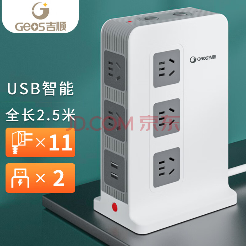 商品相册:吉顺立式插座办公牛插排桌面USB排插多功能接插线板防过载电涌新国标分控 2.5米第