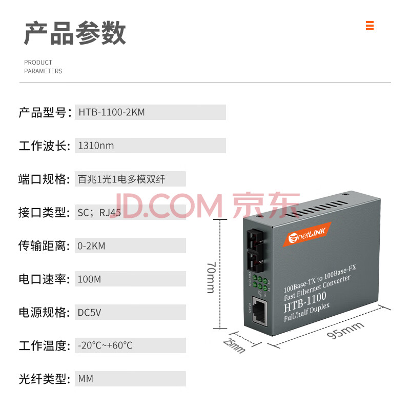 商品相册:netLINK HTB-1100-2KM 光纤收发器 百兆多模双纤光电转换器 0-2公里 DC5V 一对第