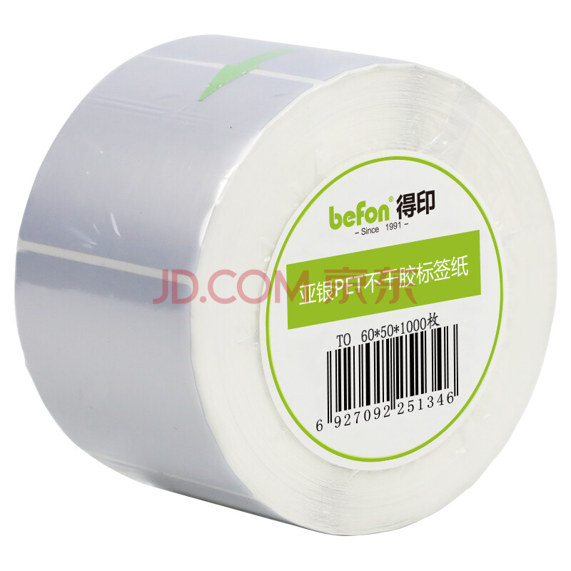 商品相册:得印哑银PET标签纸 60mm*50mm*1000枚单排 亚银不干胶条码打印纸 防水pet贴纸 三防固定资产标签第