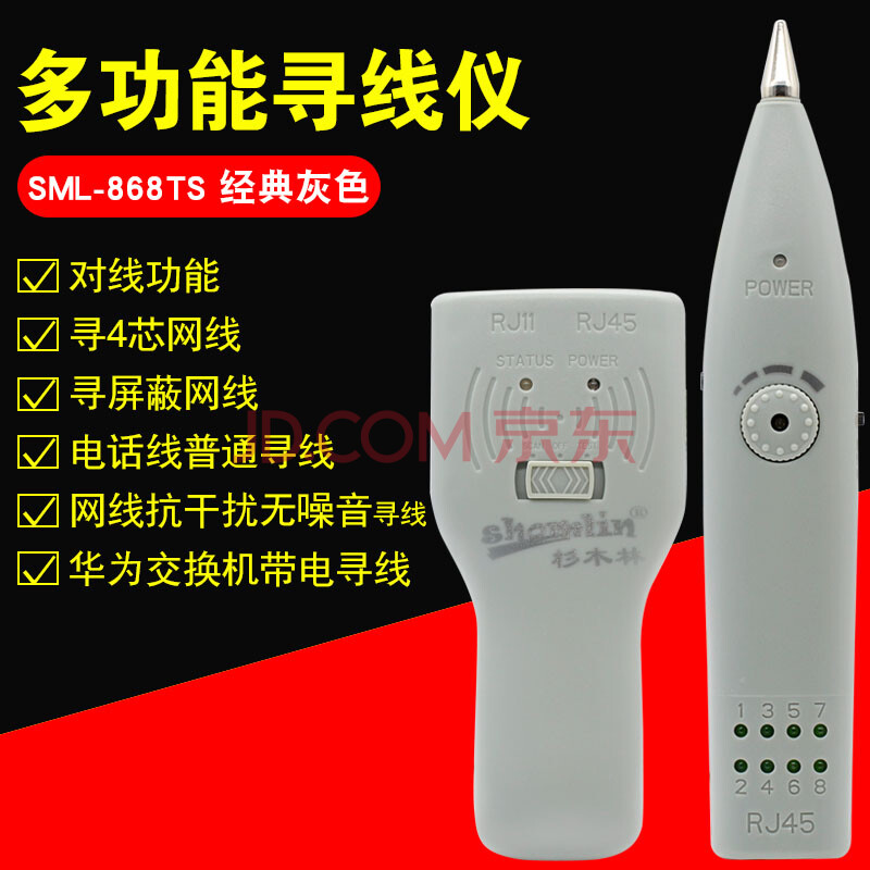 商品相册:杉木林 SML-868TS 多功能网络寻线仪 查线器 网线电话线寻线蚁带电找线器巡线仪 带电寻线 抗干扰 灰色经典款第