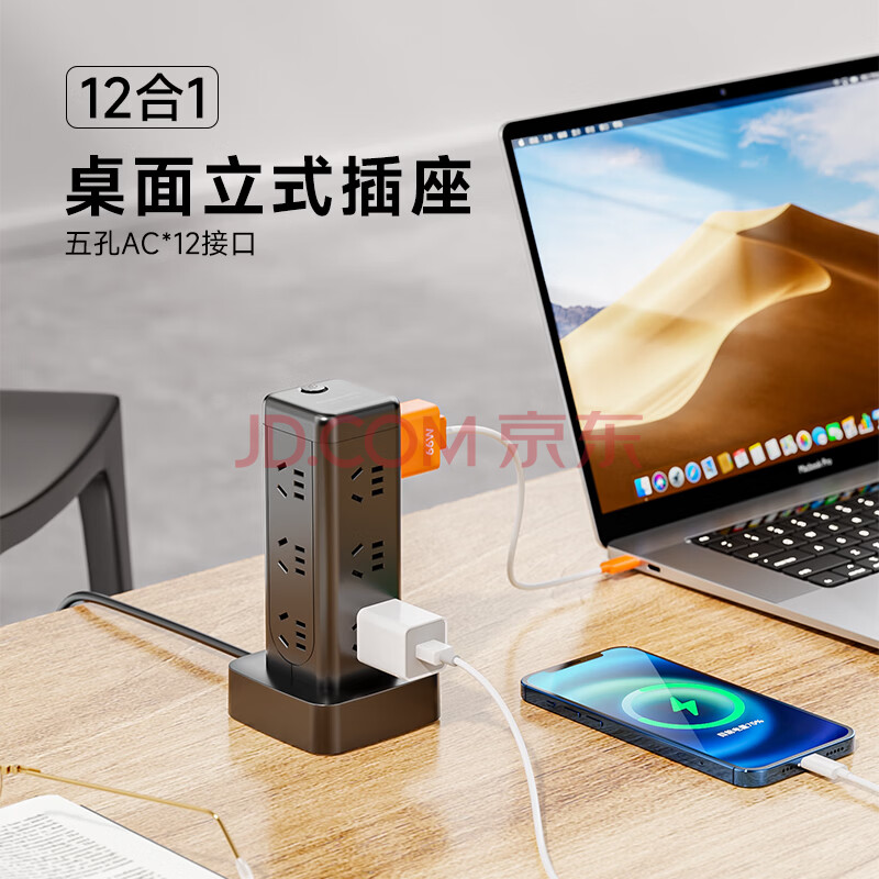 商品相册:良工(lengon)魔方立式插座/插排 总控12插位1.7米 插板/排插/插线板/接线板/拖线板/宿舍家用办公 U1012-1.7黑第