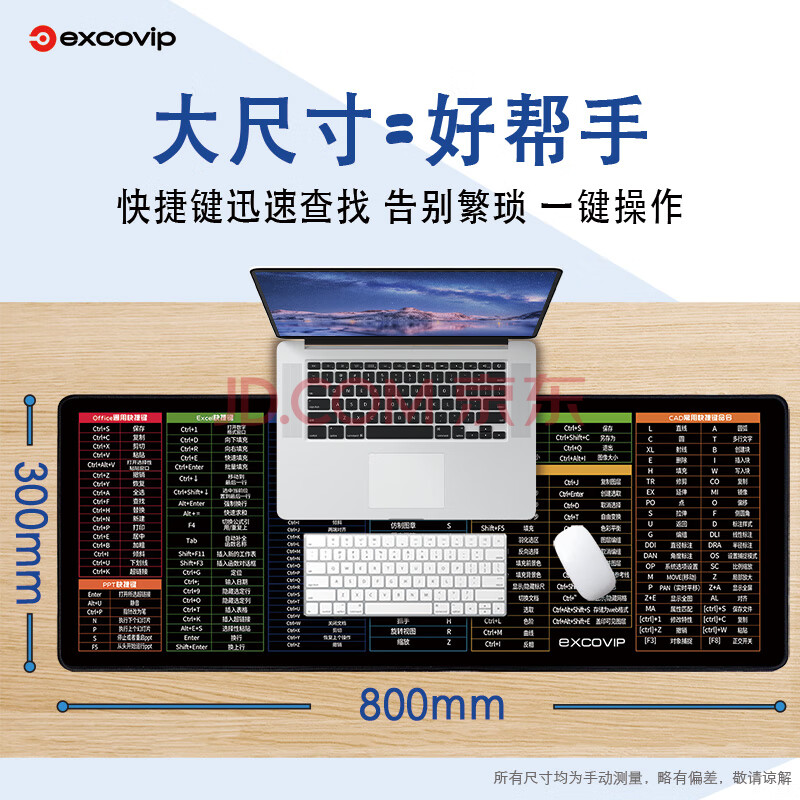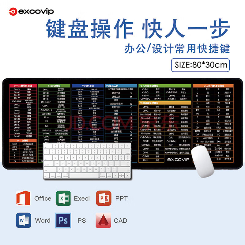 商品相册:宜适酷(EXCO)快人一步 快捷键鼠标垫大号 键盘垫子长款电脑Office超大桌垫PS大全800*300办公桌面4合1黑色6967第