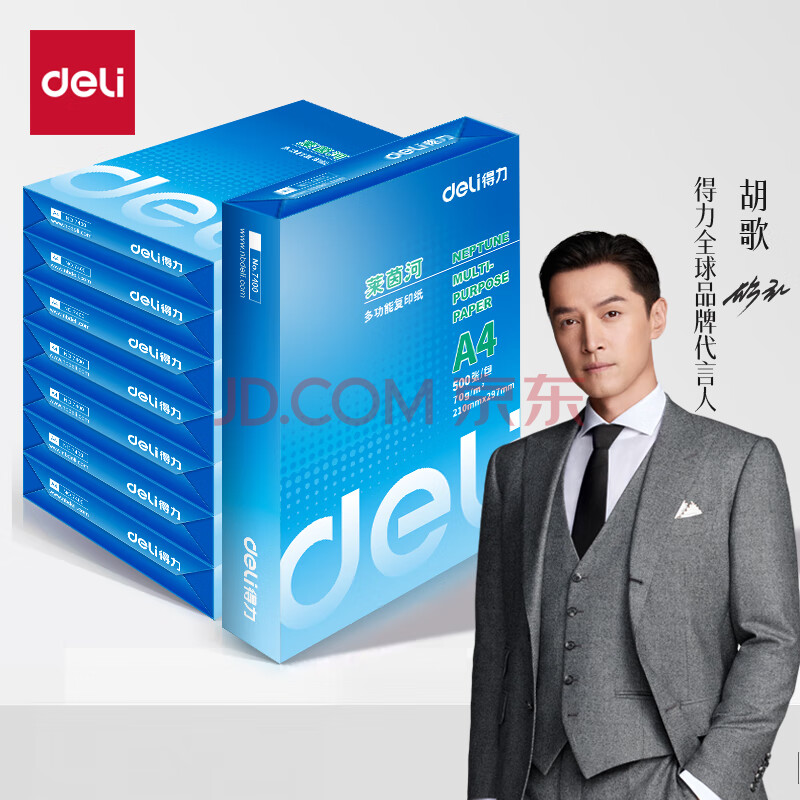 商品相册:得力(deli)莱茵河A4打印纸 70g500张*8包一箱 口碑优选复印纸 双面草稿纸 整箱4000张 7402【采购优选】第