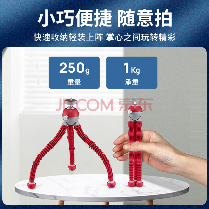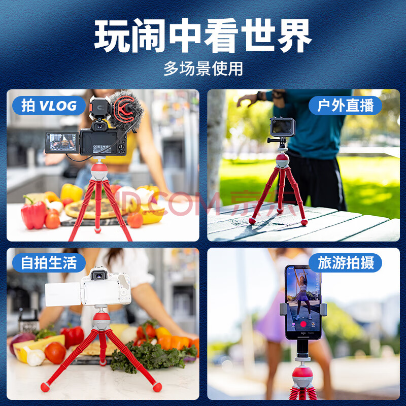 商品相册:宙比(JOBY)JB01758-BWW 中号柔性八爪鱼三脚架套装单反微单运动相机手机自拍杆桌面直播支架双冷靴带夹红色第