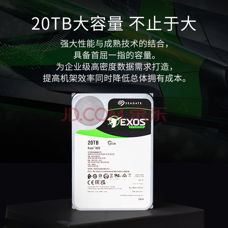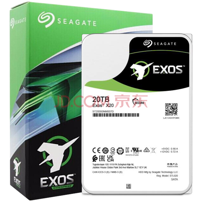 商品相册:希捷(SEAGATE)企业级硬盘 20TB 256MB 7200RPM CMR垂直 SATA 希捷银河Exos X20系列 服务器硬盘ST20000NM007D第