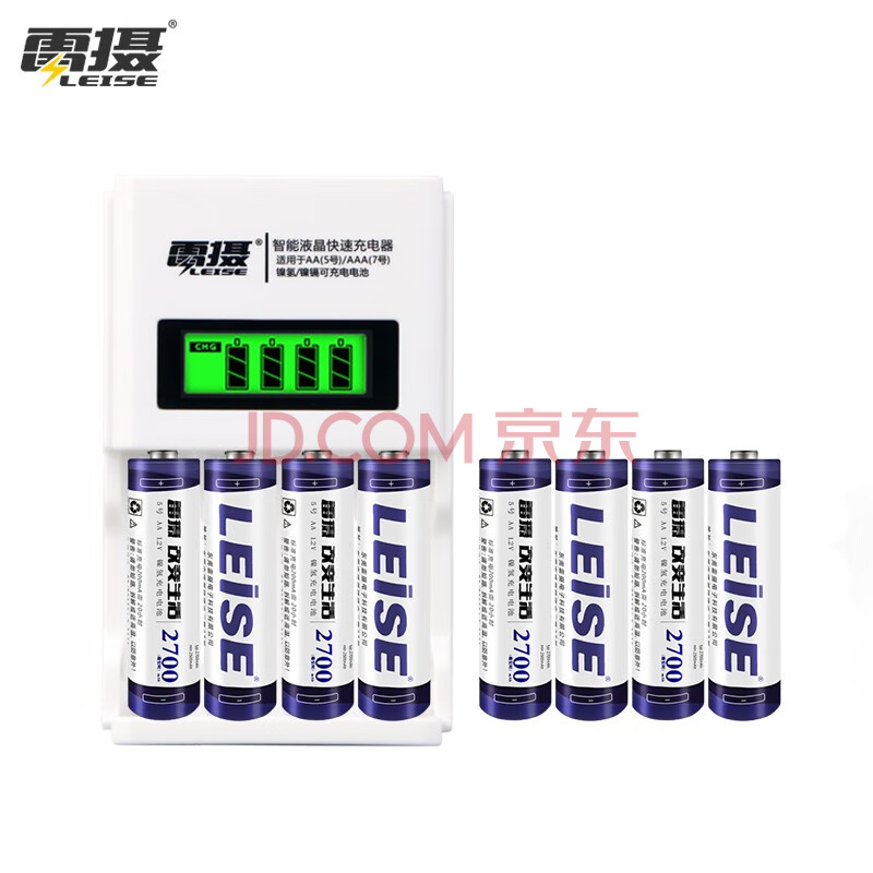 商品相册:雷摄(LEISE)充电电池5号五号8节智能液晶套装(8节5号2700毫安电池+4槽液晶充电器)黑悟空游戏手柄可用电池第