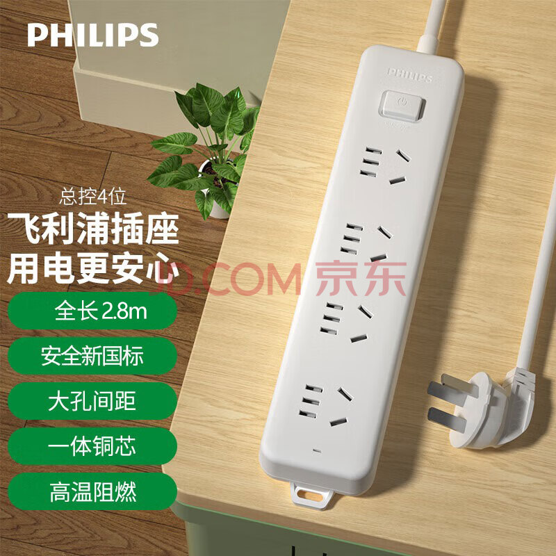 商品相册:飞利浦(PHILIPS)4位总控2.8米 儿童保护门 插线板/插排/排插/接线板/拖线板第