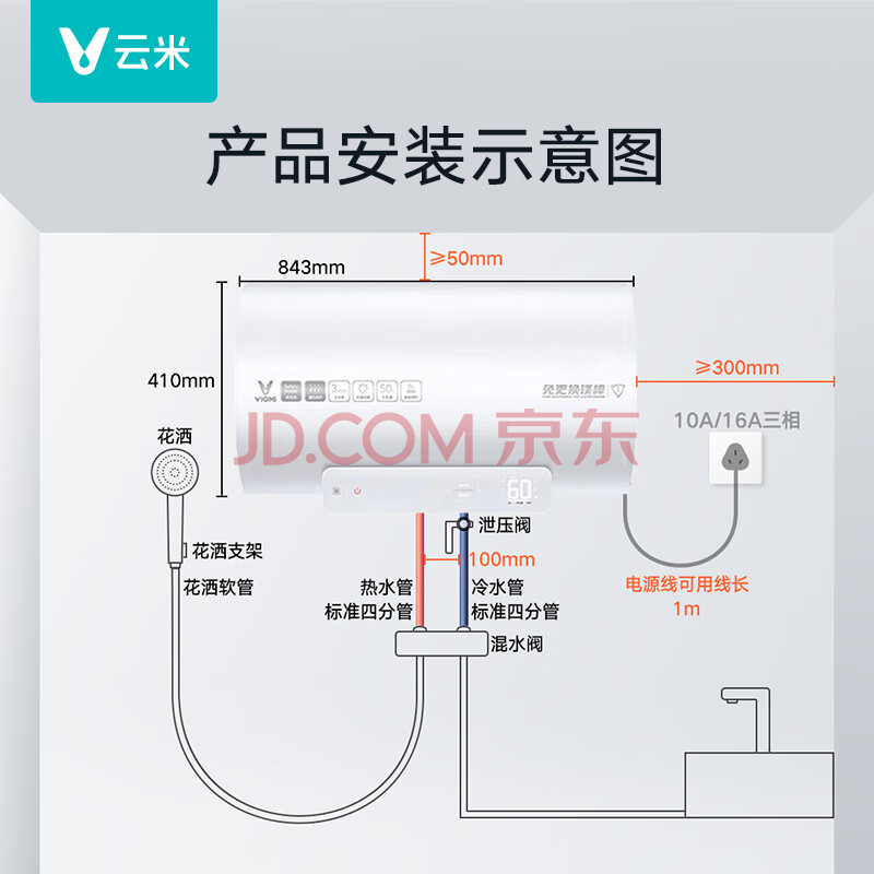 商品相册:云米(VIOMI)电热水器60升双管速热3000W免换镁棒VEW6010 8年质保第