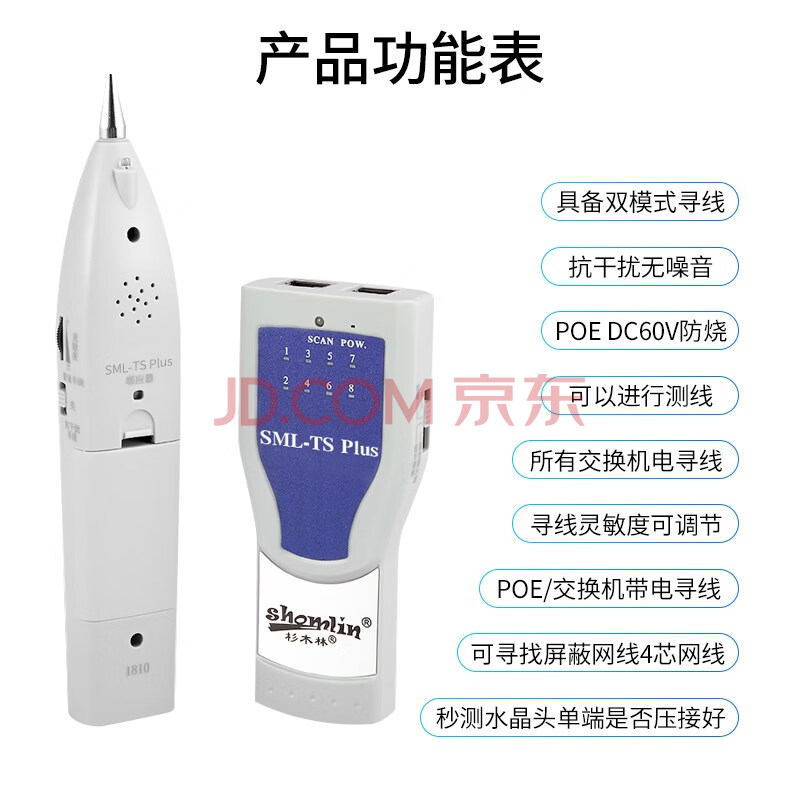 商品相册:杉木林SML-TS Plus双模式寻线仪 抗干扰POE带电抗压防烧寻线多功能网络测试秒测单端线查线器 巡线仪套装第
