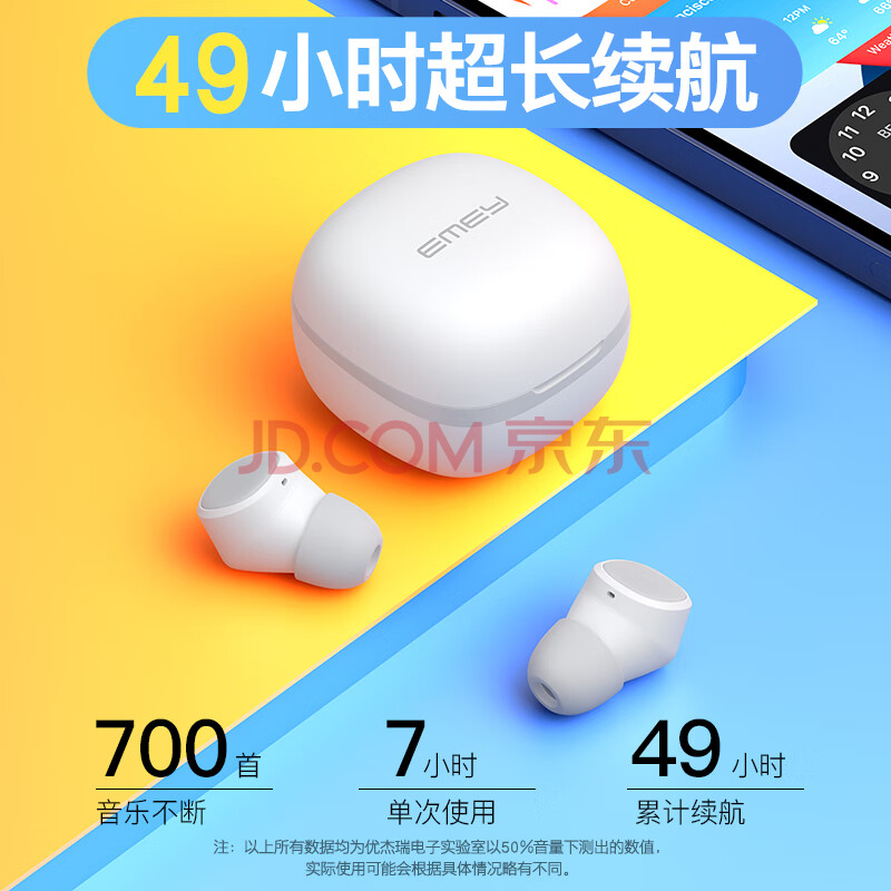 商品相册:EMEY蓝牙耳机 真无线蓝牙 入耳式运动游戏耳机蓝牙超长待机续航适用于苹果华为小米手机 T1X 白色第