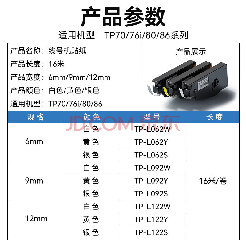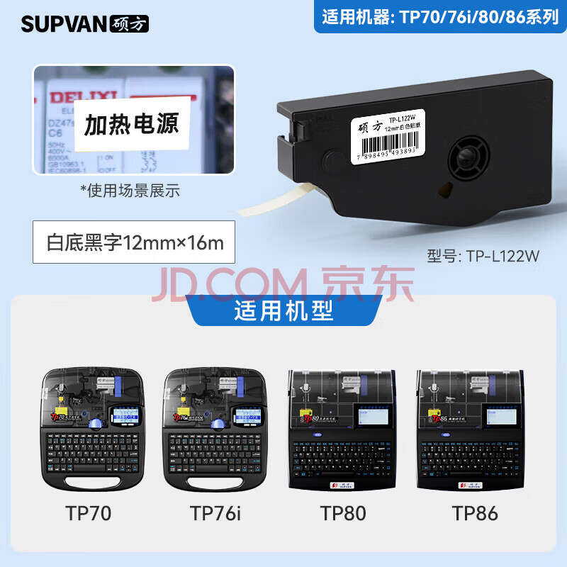 商品相册:硕方线号机贴纸TP70/TP76/TP80/TP86打号机打码机标签机打印不干胶贴纸 12mm白色TP-L122W第