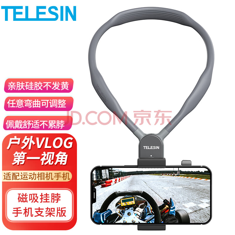 商品相册:TELESIN(泰迅)磁吸挂脖手机支架兼容运动相机支架拍摄固定支架第一人称视角拍摄抖音直播钓鱼骑行第