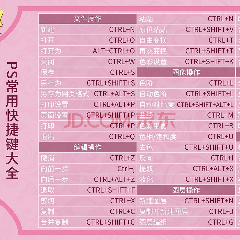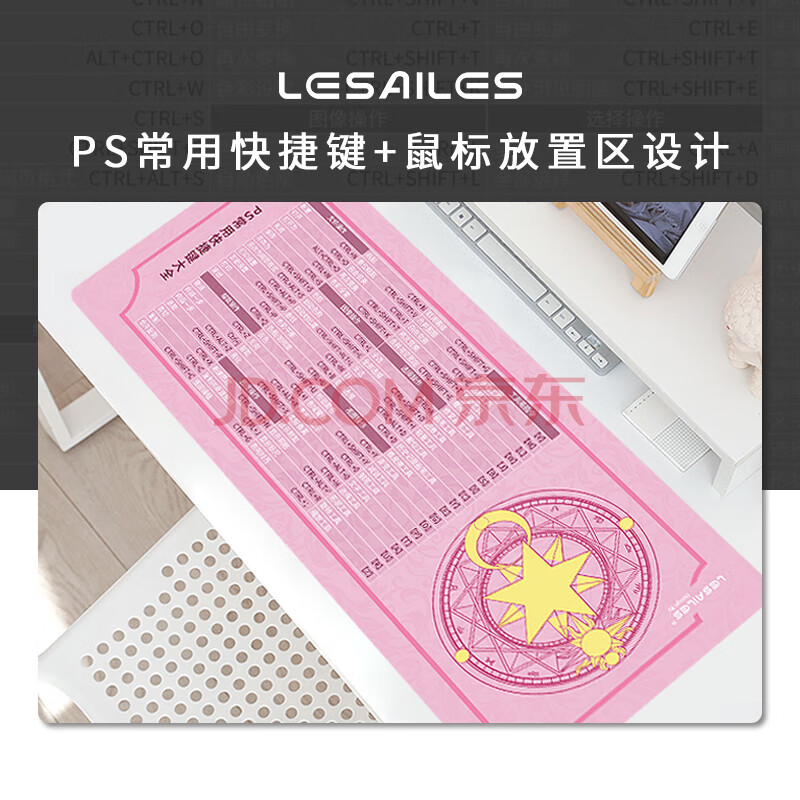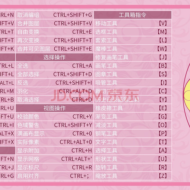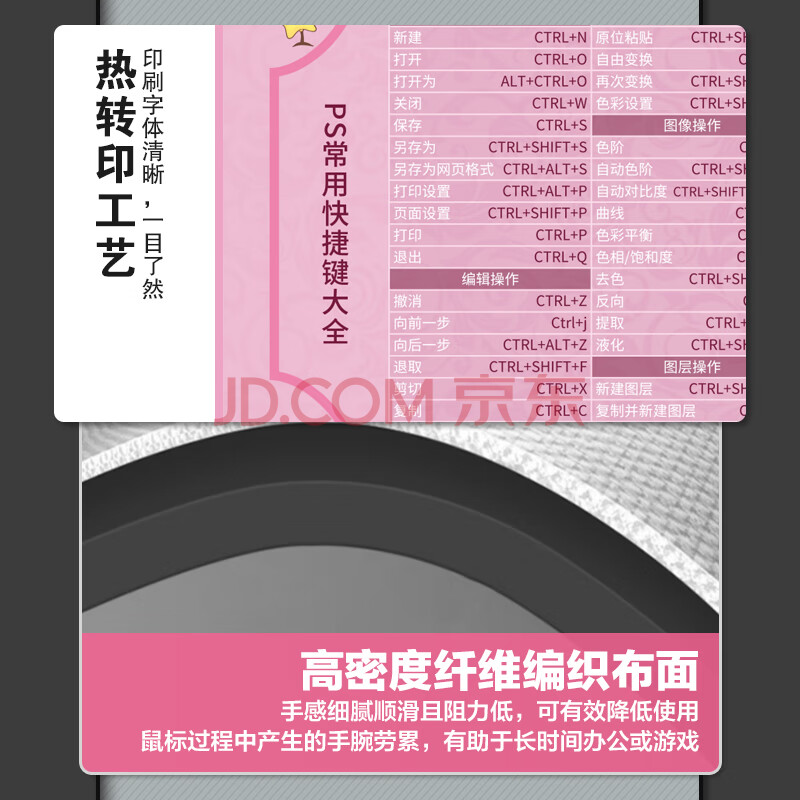 商品相册:飞遁 鼠标垫电竞游戏办公 纯色专用大号电脑桌垫 PS快捷键大全 顺滑编织包边加厚 800*300*3mm 粉色第