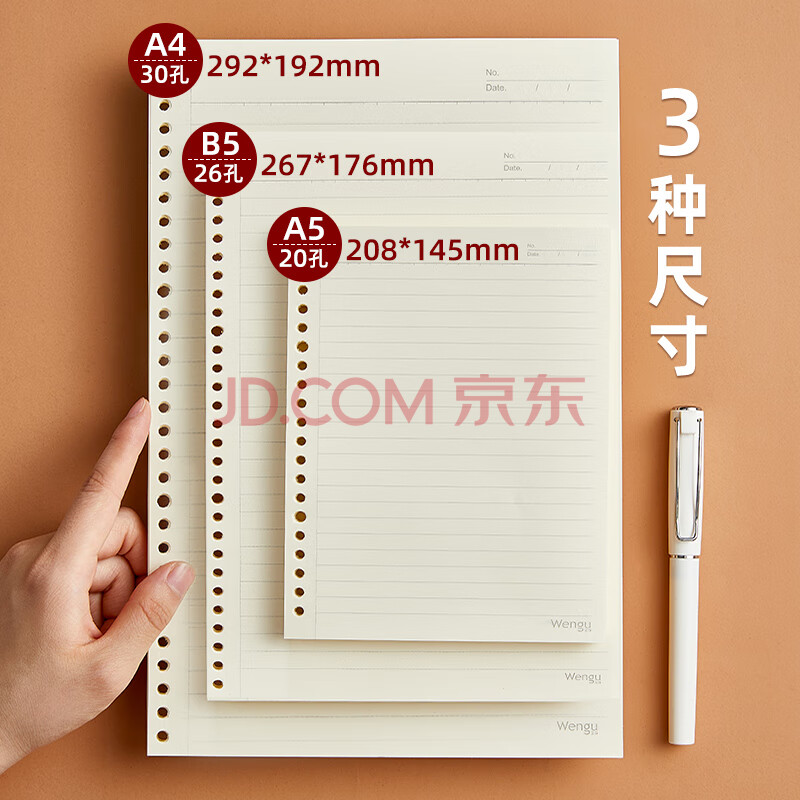 商品相册:文谷(Wengu)A5纠错通用活页本替芯20孔活页纸替换纸笔记本线圈本内芯50张A550-3第