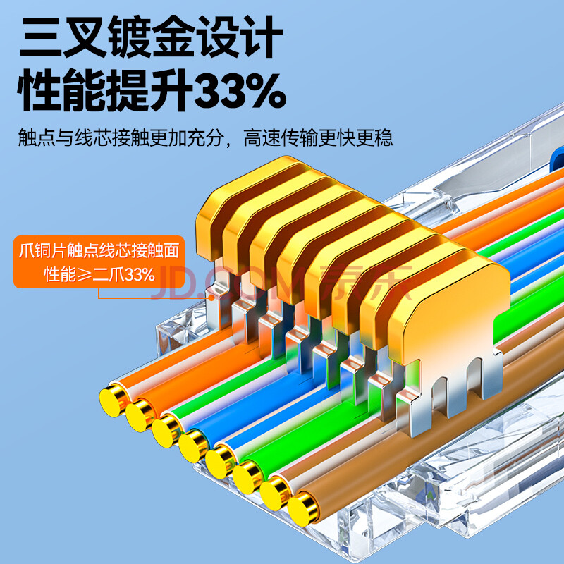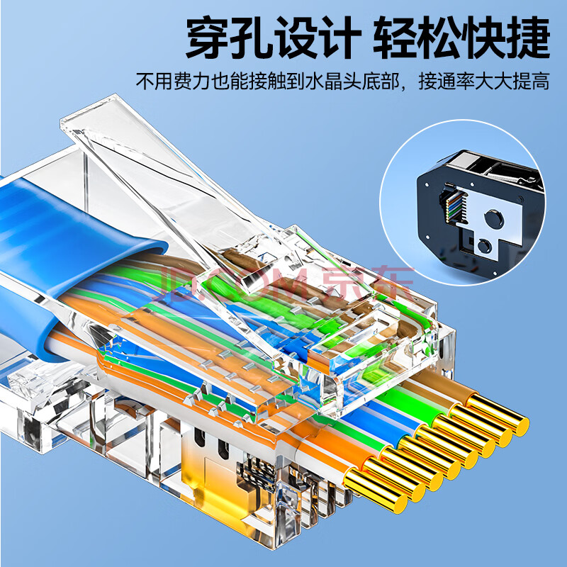 商品相册:山泽 超五类穿孔式网线水晶头 cat5e类工程rj45镀金电脑网络连接器 8P8C千兆通孔水晶头 100个 CKT5100第