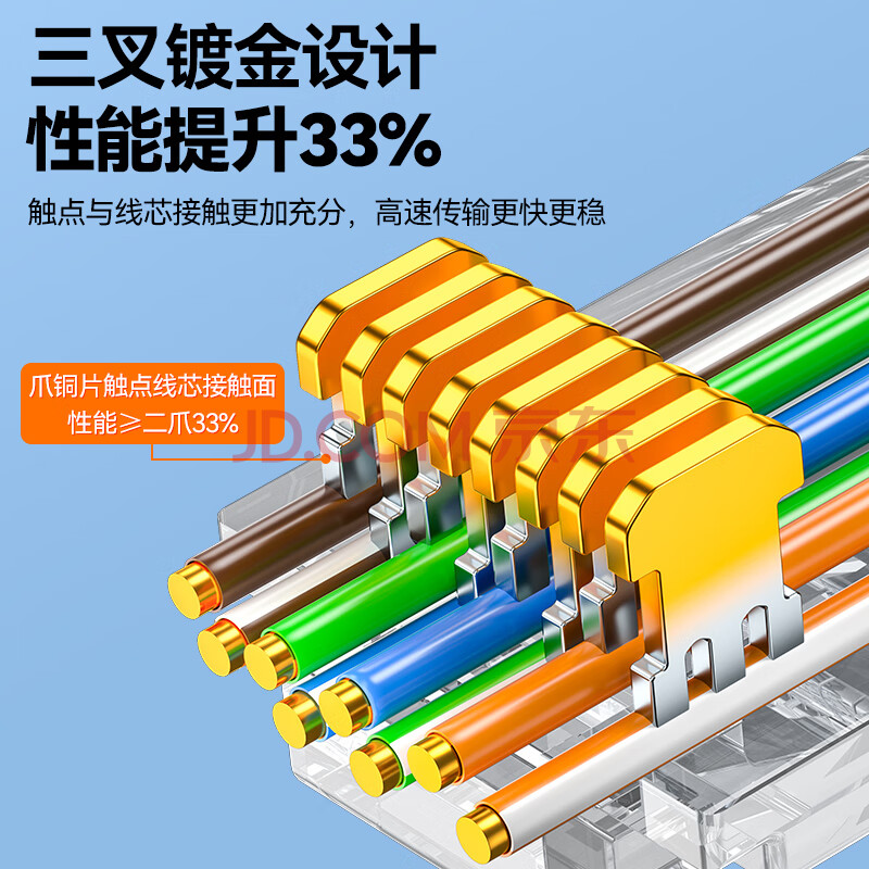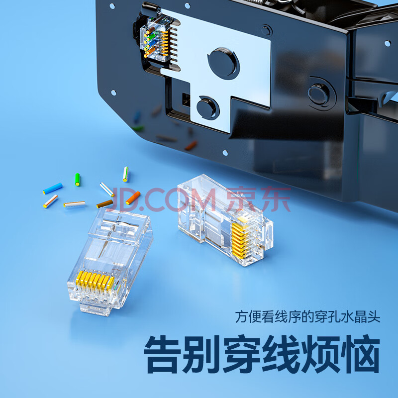商品相册:山泽 六类直通穿孔式水晶头 8P8C镀金千兆网络连接器 RJ45网线接头 CAT6类通孔水晶头 100个 CKT6100第