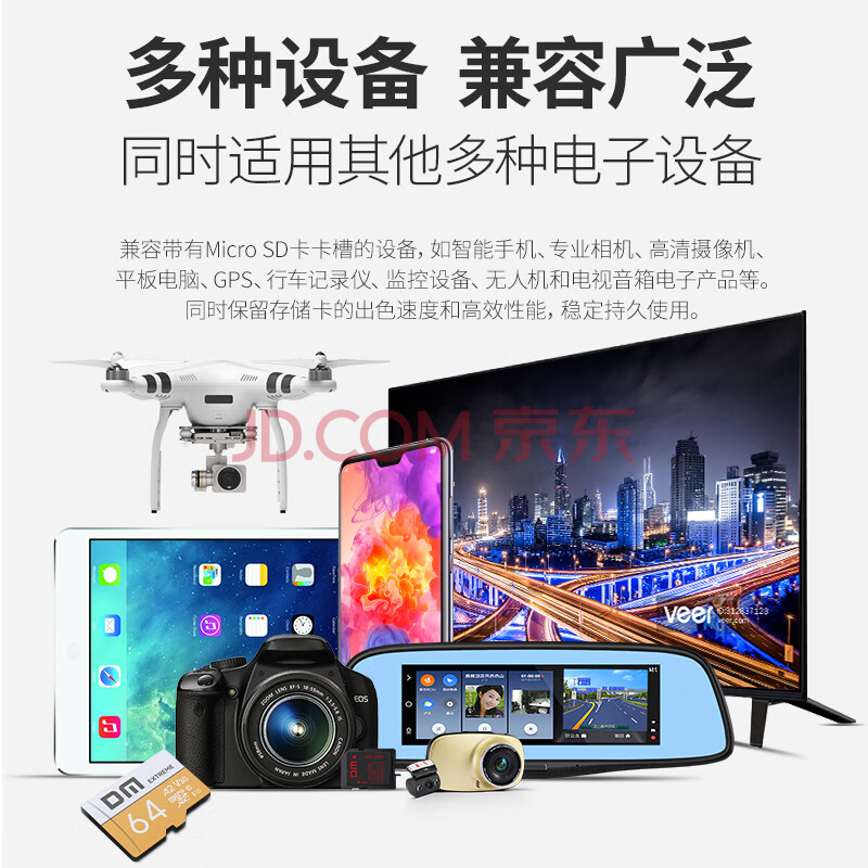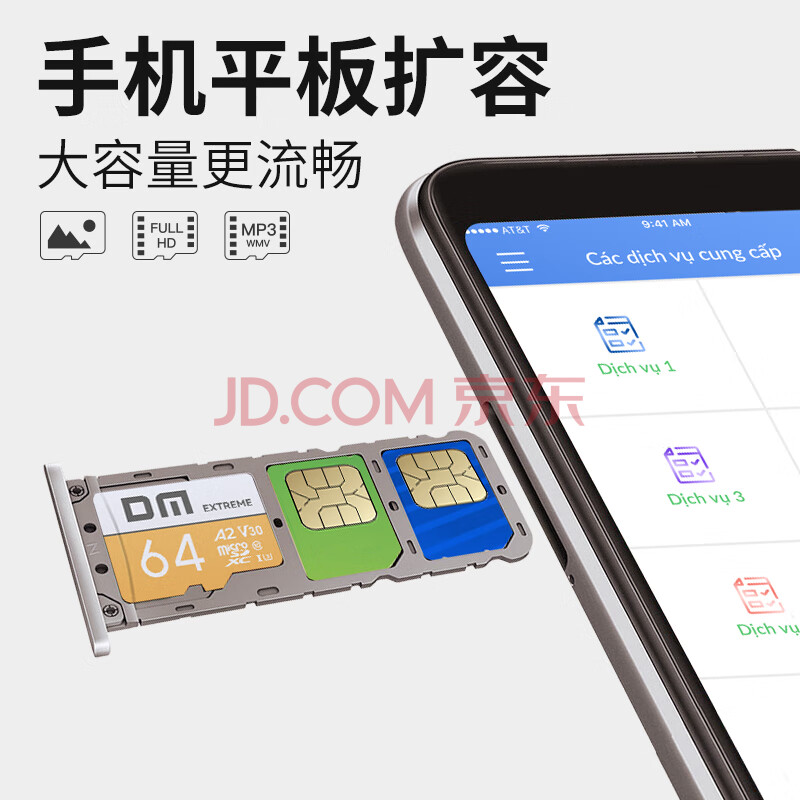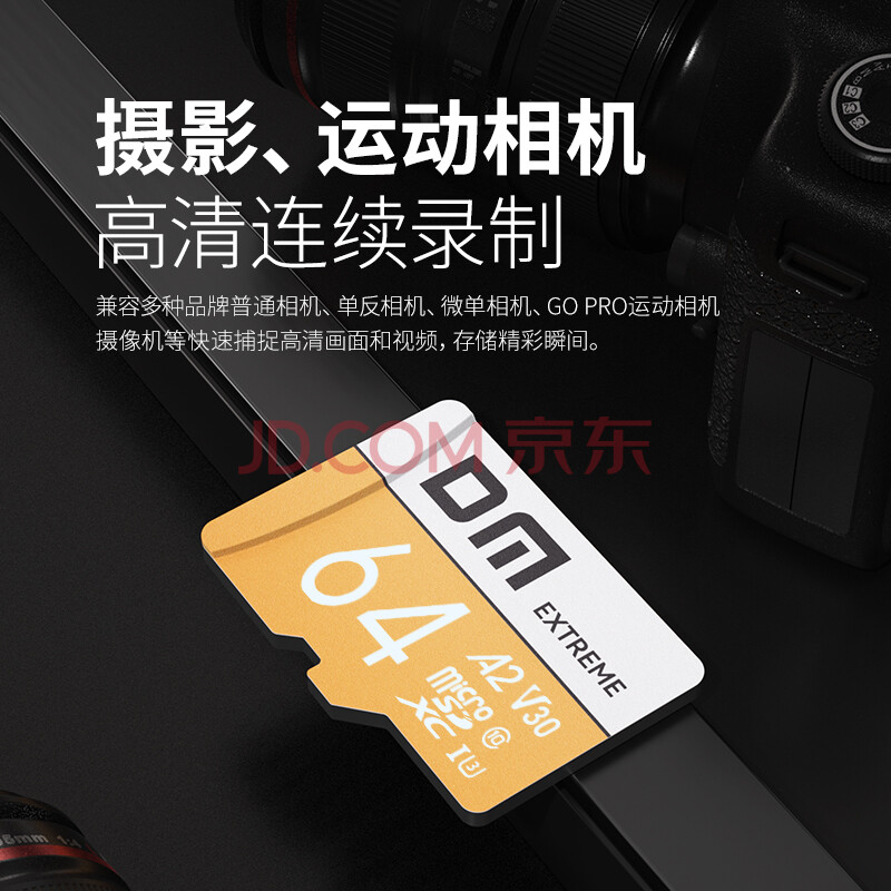 商品相册:DM大迈 64GB TF(MicroSD)存储卡 金卡 A2 V30 游戏手机行车记录仪监控摄像头多设备兼容高速内存卡第