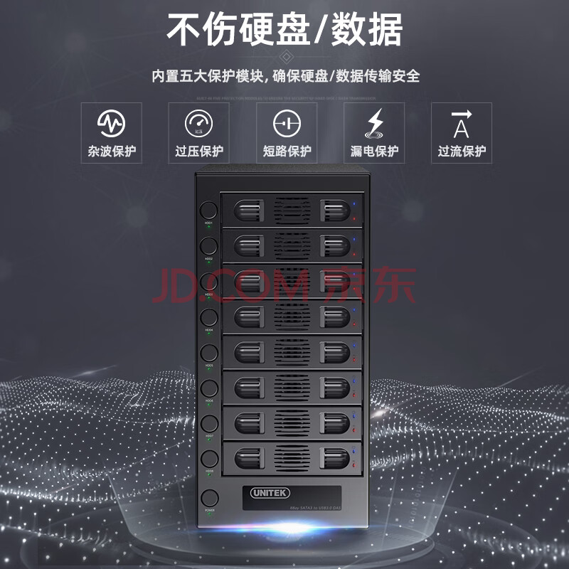 商品相册:优越者(UNITEK)硬盘柜8盘位2.5/3.5英寸通用SSD固态机械硬盘扩展柜八盘企业级电脑外接多硬盘扩容存储柜第