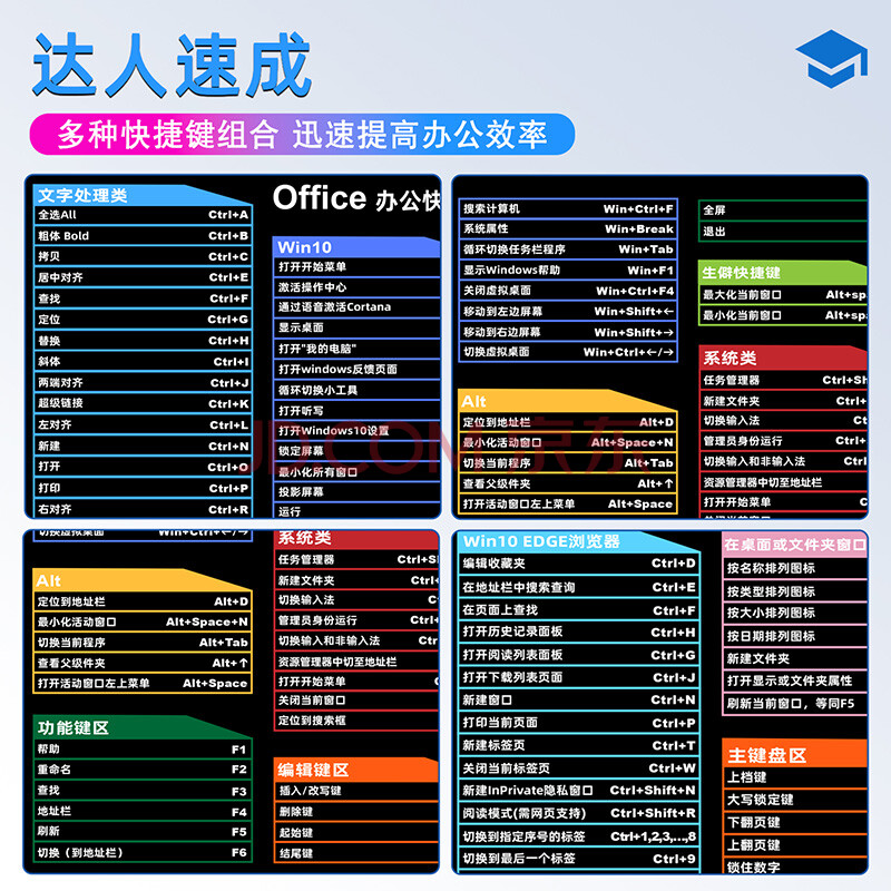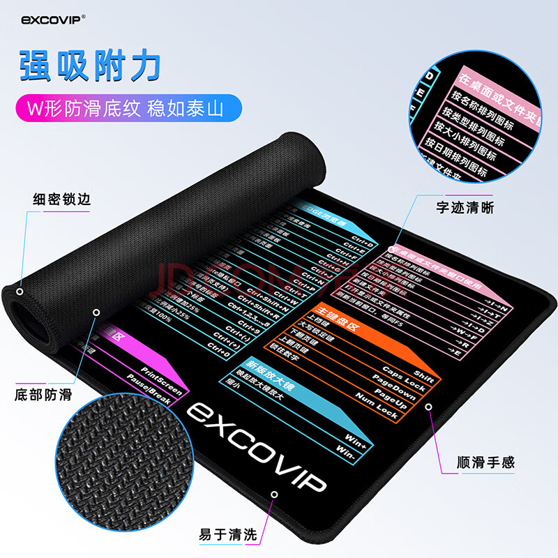 商品相册:宜适酷(EXCO)快捷键鼠标垫大号桌垫office专用笔记本电脑办公软件鼠标垫快捷键锁边游戏键盘大垫子9141第