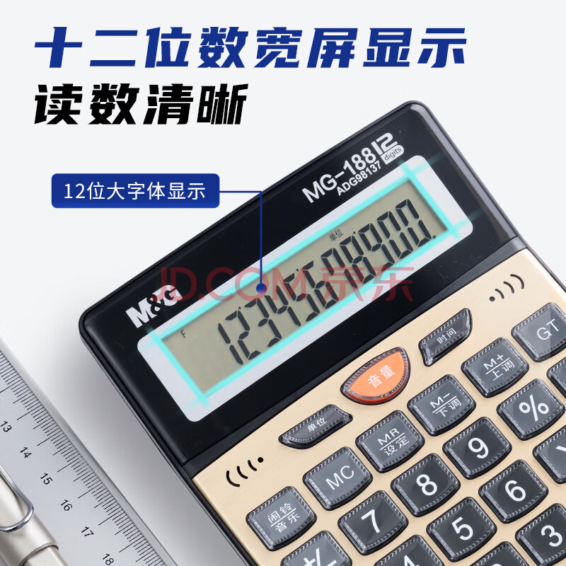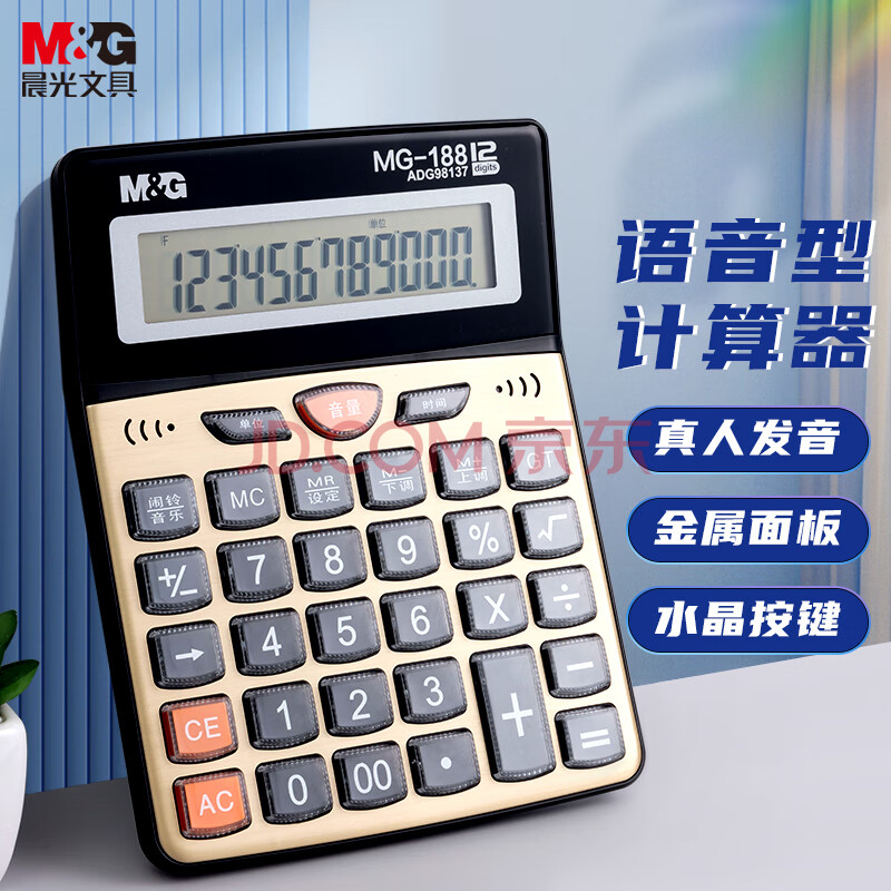 商品相册:晨光(M&G)文具金色金属面板计算器 语音型桌面计算机 学生/办公通用12位大屏幕计算器 单个装ADG98137第