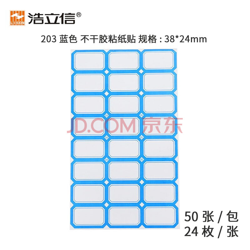 商品相册:浩立信(LISON)203蓝色*50张 38*24mm(24枚/张) 不干胶粘纸贴 标签贴纸 自粘性标贴纸 口取纸 口曲纸第
