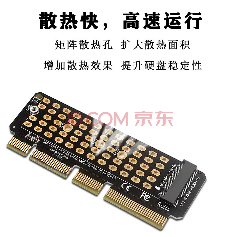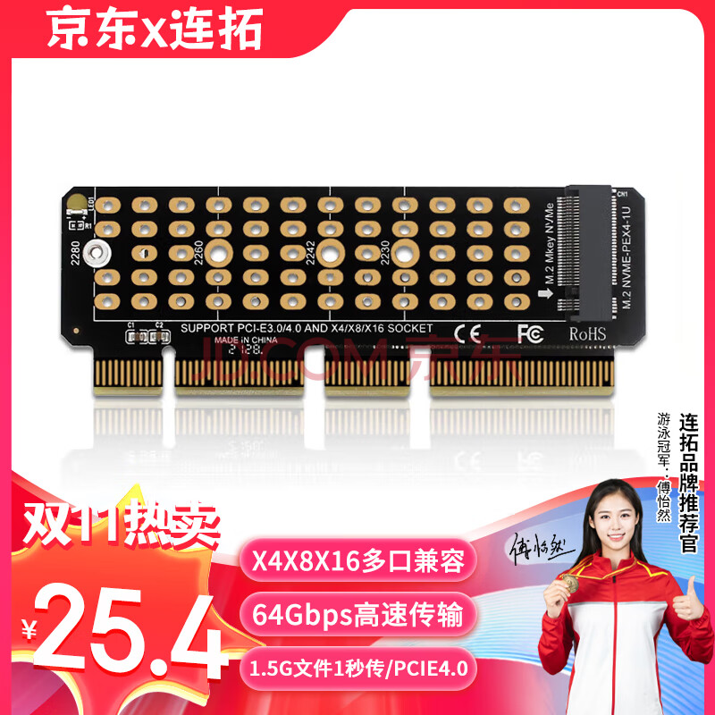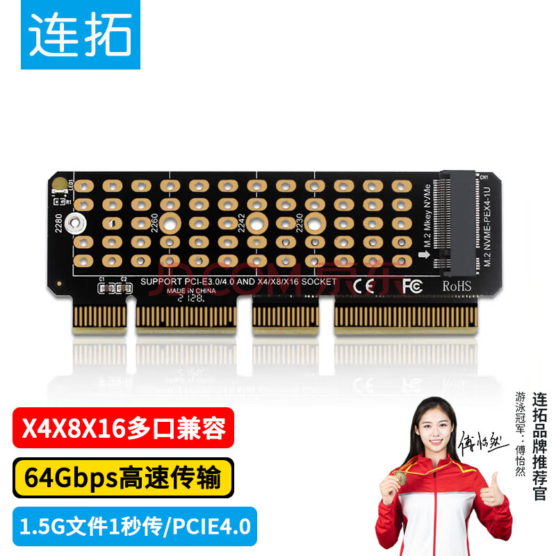 商品相册:连拓 PCIE转M.2 NVMe拓展卡兼容Pcie4.0/3.0适用台式主机电脑机箱x4/x8/x16扩展SSD固态硬盘转接卡第