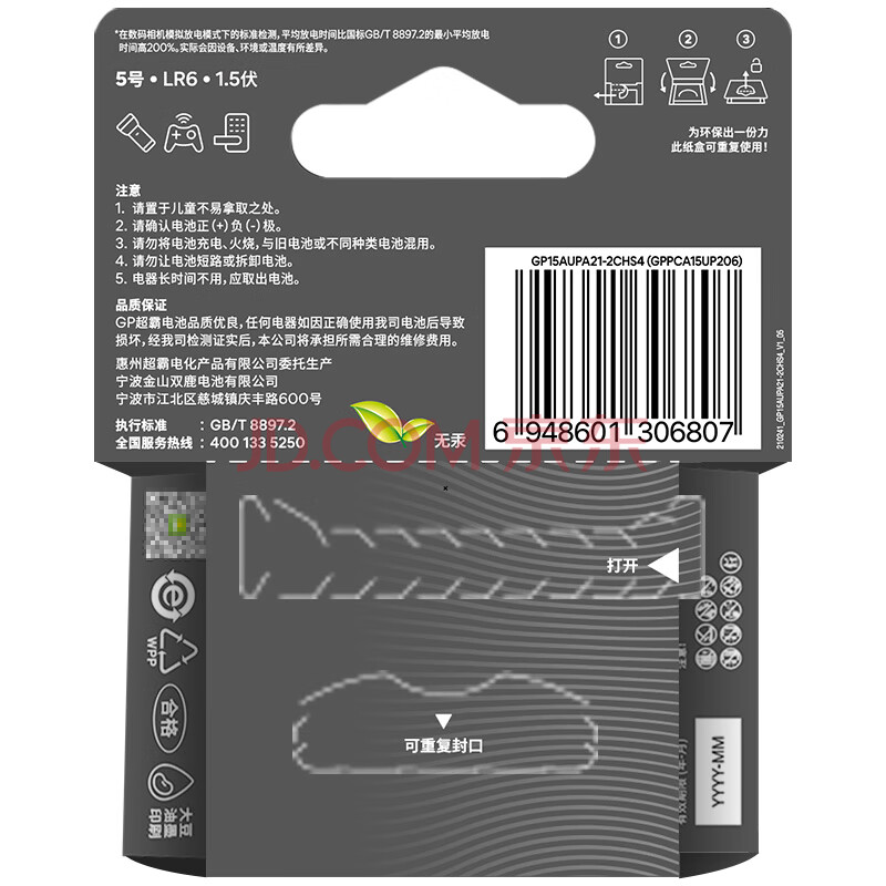 商品相册:超霸(GP)5号4粒1.5V超强碱性 智能锁电子指纹锁密码锁防盗门专用电池/耳温枪/血氧仪/鼠标AA/R6P 商超同款第