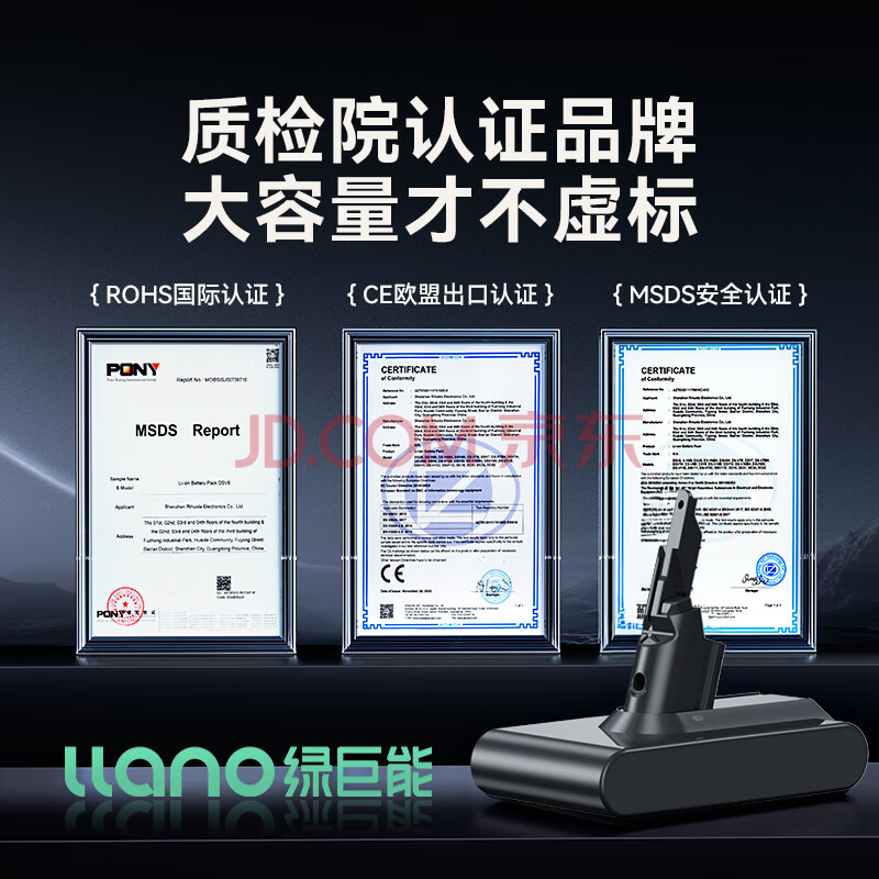 商品相册:绿巨能(llano)适用戴森Dyson电池V7吸尘器充电锂电池SV11 V7 Animal/Trigger/Motorhead Pro/等 3000mAh第